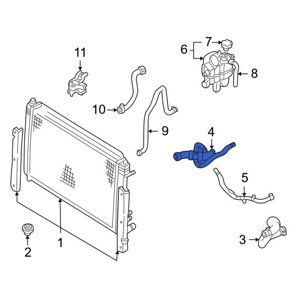This is the radiator hose that connect from the theromstat housing to the lower radiator hose. Tee To Reservoir Thermostat To Valve Lower - Engine To Water Pump Filler Tank Heater Hose Heater Hose Series. Buy Discount Auto Parts Online Today.